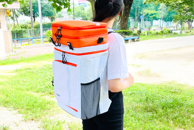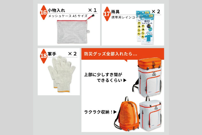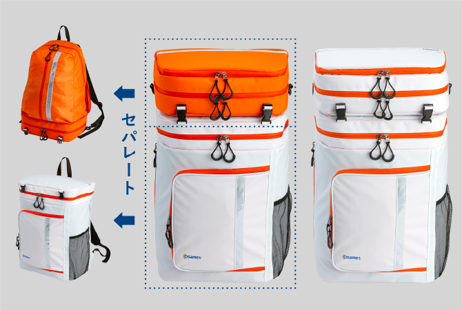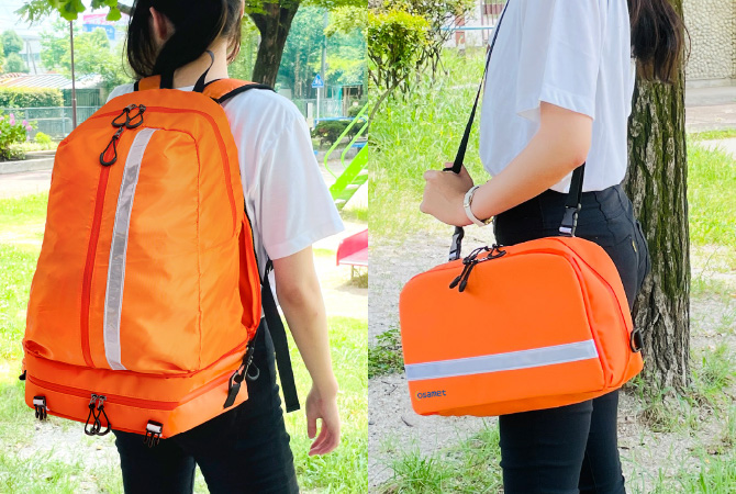 防災リュックとしての機能を果たしつつ、ありそうでなかったセパレート式の防災リュックとオサメットと防災グッズのセット。