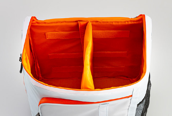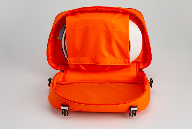 大きいリュックは中が2分割になっていて、自分好みに防災グッズを分けることもできます。