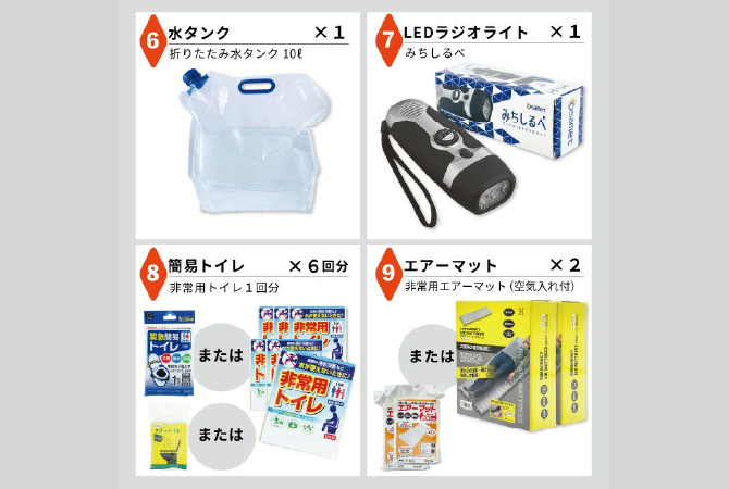 いざという時に使えるオサメットをはじめとした19種40点の防災セットです。