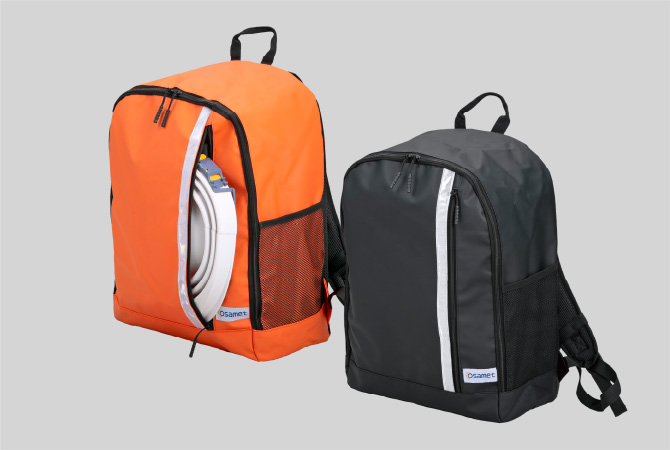 インテリアに溶け込むシンプルさと防災リュックとしての機能を兼ね備えたオサメットオリジナルリュック。
